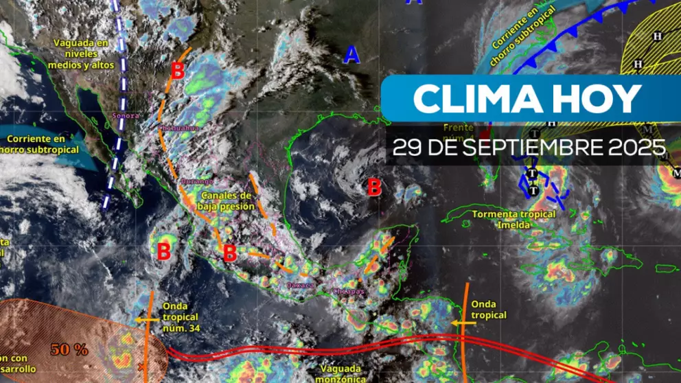 Ciudad de México.— Este lunes 29 de septiembre se esperan lluvias intensas en al menos 14 estados del país, informó el pronóstico nacional. Las precipitaciones estarán acompañadas de nublados y posibles inundaciones, sobre todo durante la tarde y noche.