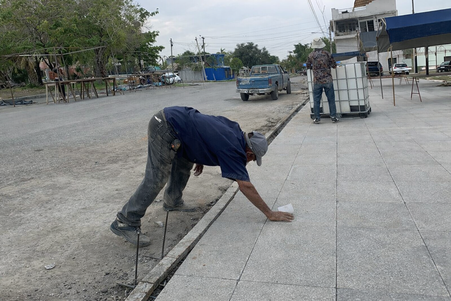 - Pisos y Revestimientos: Se encuentra en proceso de finalización la instalación de la marmolina, lo que otorga una estética limpia y duradera a la superficie de la plaza.